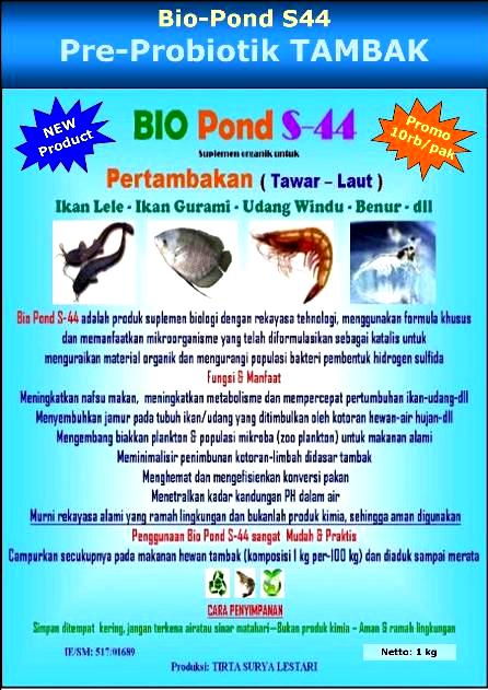 Pre-Pro Biotik Bio-Pond S44 untuk tambak udang,ikan, dll